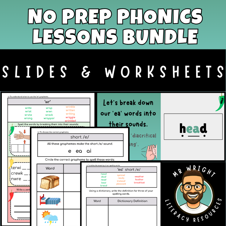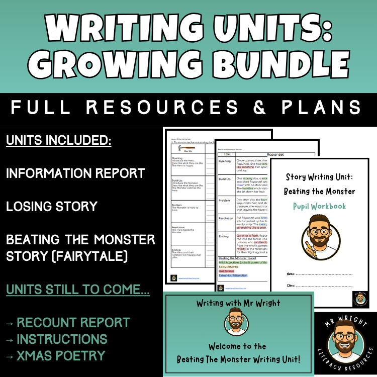 With Mr Wright Teaching Resources you get fully resourced Writing Units & Phonics Lessons so you won’t need to stress about what to teach and how to teach it.