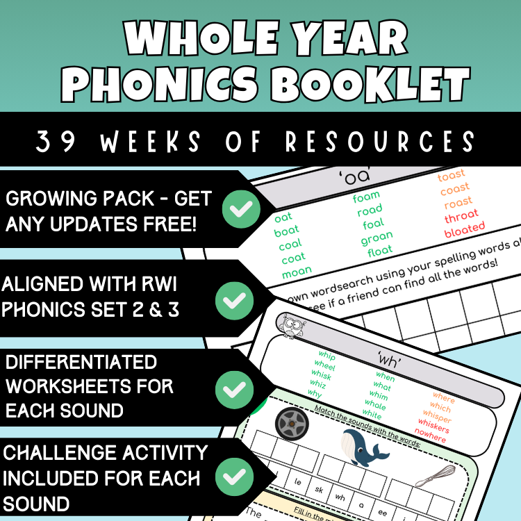 This Full Year Phonics Booklet is packed with 39-weeks worth of resources, enabling you to teach through the key phonics sounds for 6 to 8 year olds.